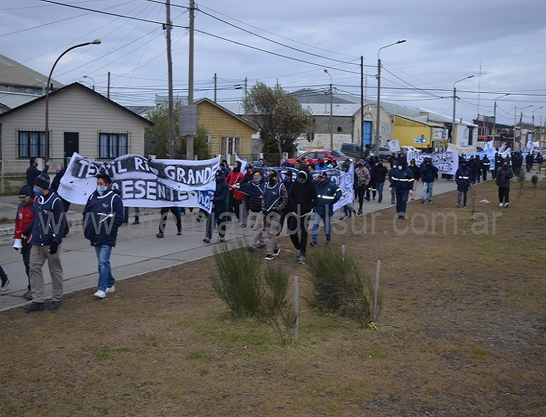 Los trabajadores de la empresa Textil Río Grande, acompañados por los gremios AOT, SETIA y SOIVA, macharon desde la planta fabril hasta el Concejo Deliberante donde entregaron un petitorio. Reclaman deudas salariales desde el mes de marzo y la protección de los puestos laborales ante el posible cierre definitivo de la empresa. Piden, a la vez, la expropiación de la empresa, en caso en que decida retirarse de la provincia, con el objetivo de conformar una Cooperativa de Trabajo.