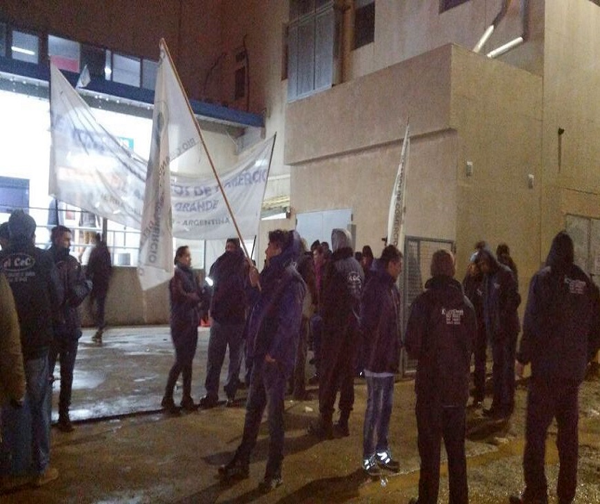 El Centro Empleados de Comercio de Río Grande realiza una medida de fuerza y se manifiesta frente a la empresa Brightstar por el despido de seis trabajadores de la empresa de limpieza Floor Clear.