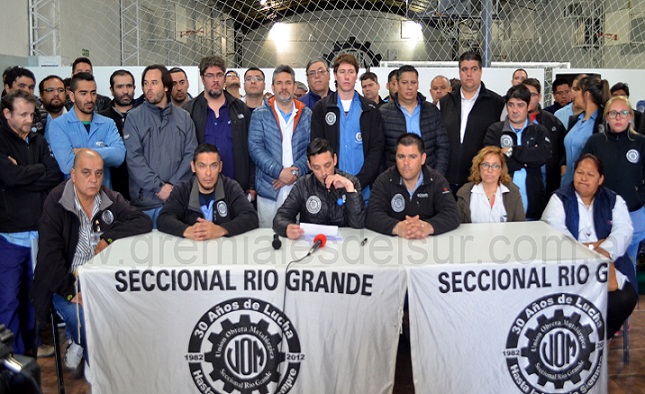 En conferencia de prensa, la dirigencia de la UOM seccional Río Grande confirmó que no firmarán la homologación del acuerdo para la industria de Tierra del Fuego. El miércoles 6 paran y se movilizan desde las 14 horas. Hubo fuertes críticas al Gobierno provincial, a Legisladores provinciales, y a los Diputados del PRO. Adelantaron la presentación de un proyecto de ley para que se declare la emergencia laboral por el término de un año.