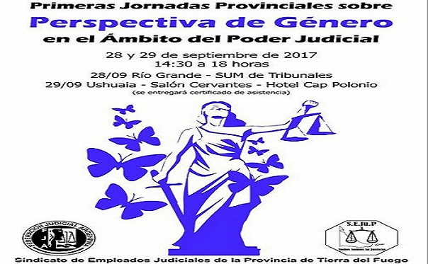 Los días 28 y 29 de Septiembre, en Río Grande y luego en Ushuaia, se concretarán las Primeras Jornadas sobre Perspectiva de Género en el ámbito del Poder Judicial organizadas por el Sindicato de Empleados Judiciales de la Provincia de Tierra del Fuego (SEJUP).