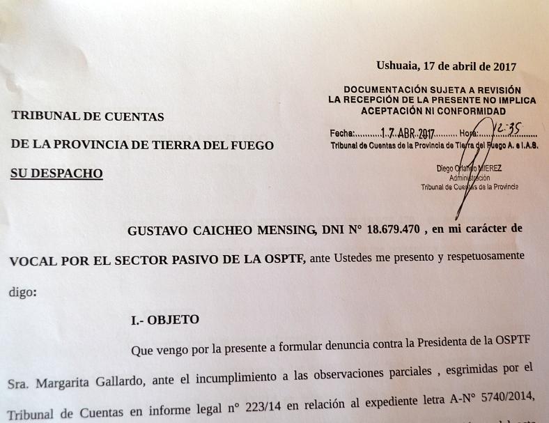 La Presidenta de la Obra Social de los trabajadores estatales de Tierra del Fuego, fue denunciada ante el Tribunal de Cuentas de la provincia, por incumplir las recomendaciones formuladas por el organismo de control, en relación a la contratación de los servicios de Sanatorio San Jorge.