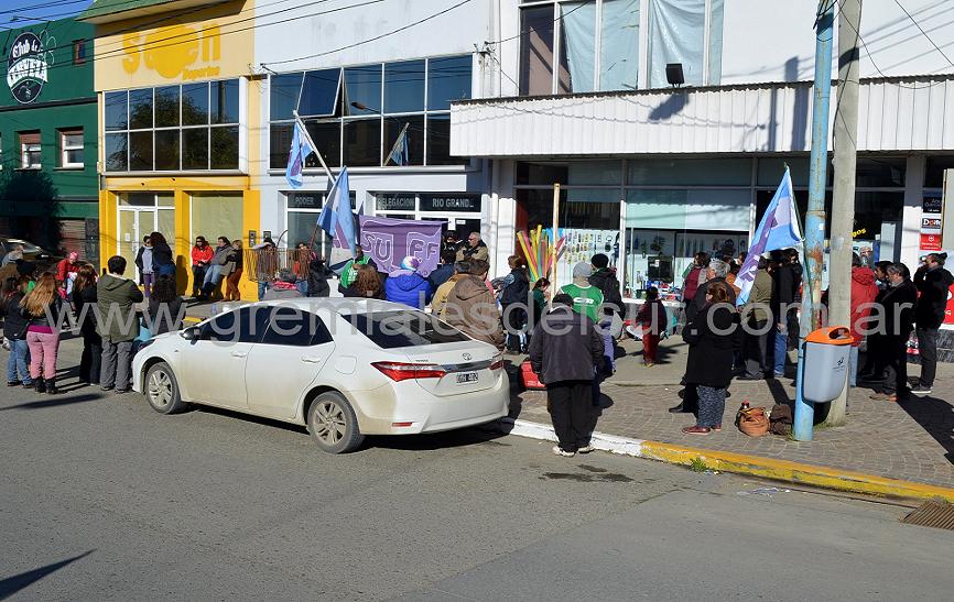 Dirigentes y militantes de los sindicatos que conforman la Unión de Gremios y Jubilados de Tierra del Fuego, se manifestaron en la Delegación de la Legislatura en Río Grande, donde se compartió una olla popular.