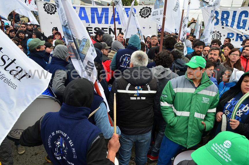 En el cierre del acto en Río Grande, el Secretario General de la UOM, y Diputado Nacional Oscar Martínez, remarcó, “estamos enfrentado al Gobierno nacional y su política, pero también estamos enfrentado la complicidad del Gobierno provincial. Queremos ejercer el derecho de seguir habitando la Tierra del Fuego”.