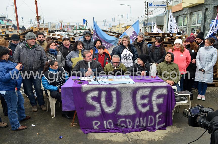 SUTEF Seccional Río Grande ratifica la continuidad y profundización del plan de lucha en contra del avasallamiento de los derechos y el ajuste salvaje que Bertone y Macri vienen a imponer al pueblo trabajador. A las 12 horas habrá una conferencia de prensa en San Martín y Belgrano, y posteriormente se iniciará el desmantelamiento del acampe.