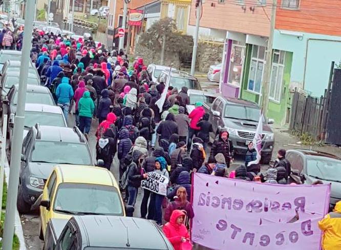 Los docentes de Tierra del Fuego concretaron la jornada de paro por 24 horas en toda la provincia acompañando con diversas actividades para visibilizar el repudio y rechazo a la falta de propuesta salarial y recortes en educación por parte del Gobierno provincial.