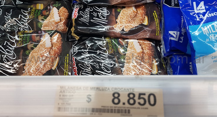 Milanesa de pescado rebozado congelado de $6.700 a $8.850 luego a $10.500
