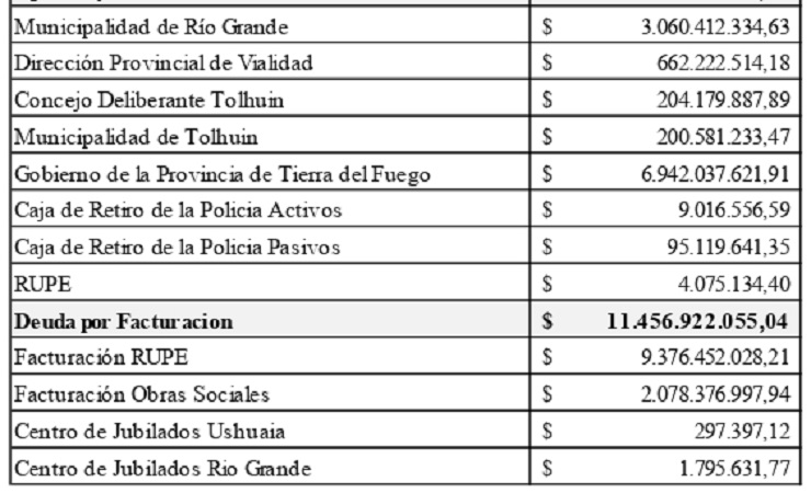 A continuación se expone el detalle de deudas de todos los entes deudores: