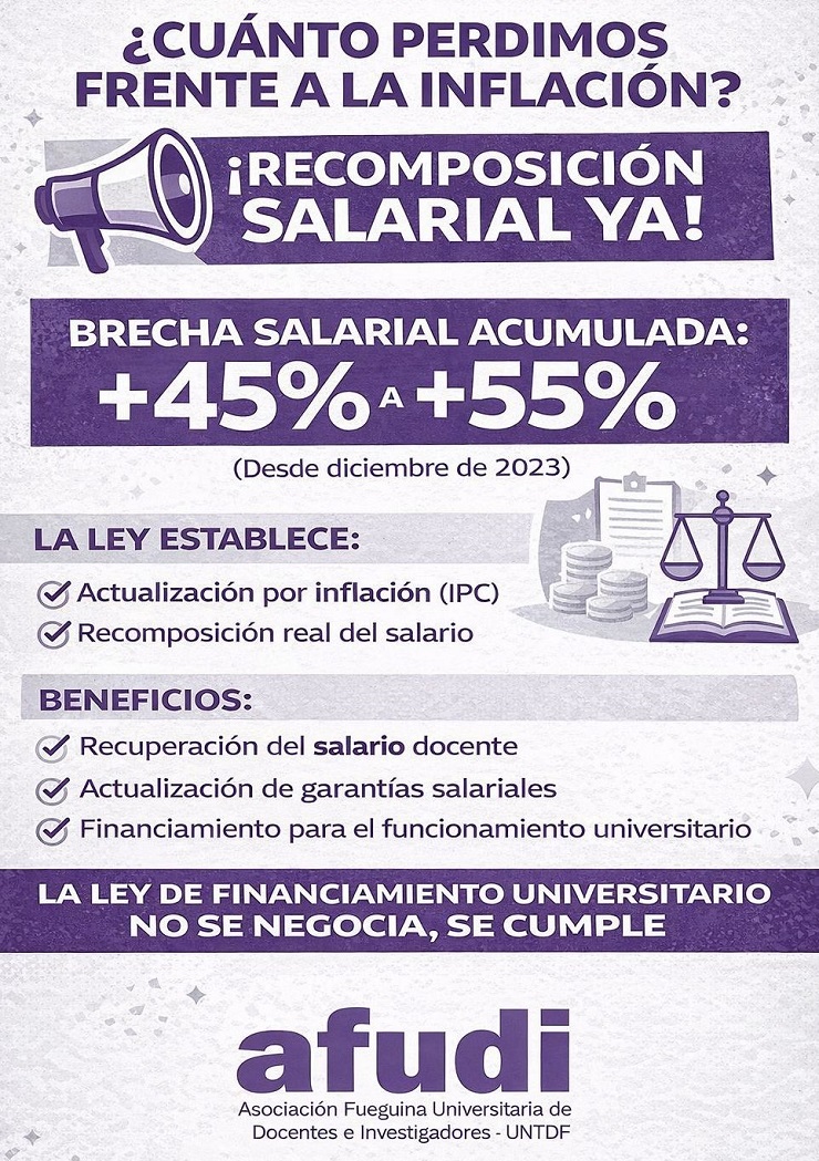 La Ley de Financiamiento Universitario, da una respuesta clara: No es un monto fijo. Es un mecanismo: Igualar salarios con la inflación (IPC), recuperar lo perdido desde diciembre de 2023.