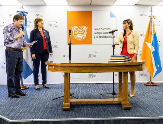 El Gobernador de Tierra del Fuego, Gustavo Melella, acompañado de la Vicegobernadora, Mónica Urquiza, tomó juramento en Casa de Gobierno, a Karina Fernández, como nueva Ministra de Trabajo y Empleo, quien agradeció la confianza puesta en su persona y desatacó que, “el trabajo atraviesa lo hogares de las fueguinas y fueguinos y por eso mi compromiso es continuar generando empleabilidad”.