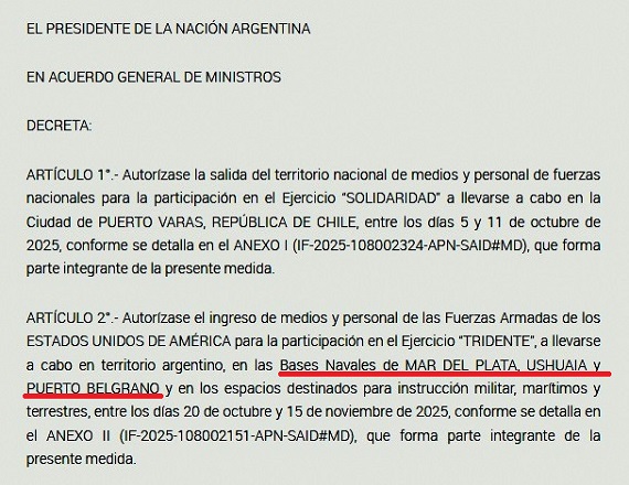 El Plenario de Secretarixs Generales de la Federación Nacional de Docentes Universitarios (CONADU) expresa su rechazo absoluto al Decreto de Necesidad y Urgencia N° 697/2025, mediante el cual el Poder Ejecutivo Nacional autoriza el ingreso de tropas de los Estados Unidos al territorio argentino y la salida de fuerzas nacionales para la realización de ejercicios militares combinados.