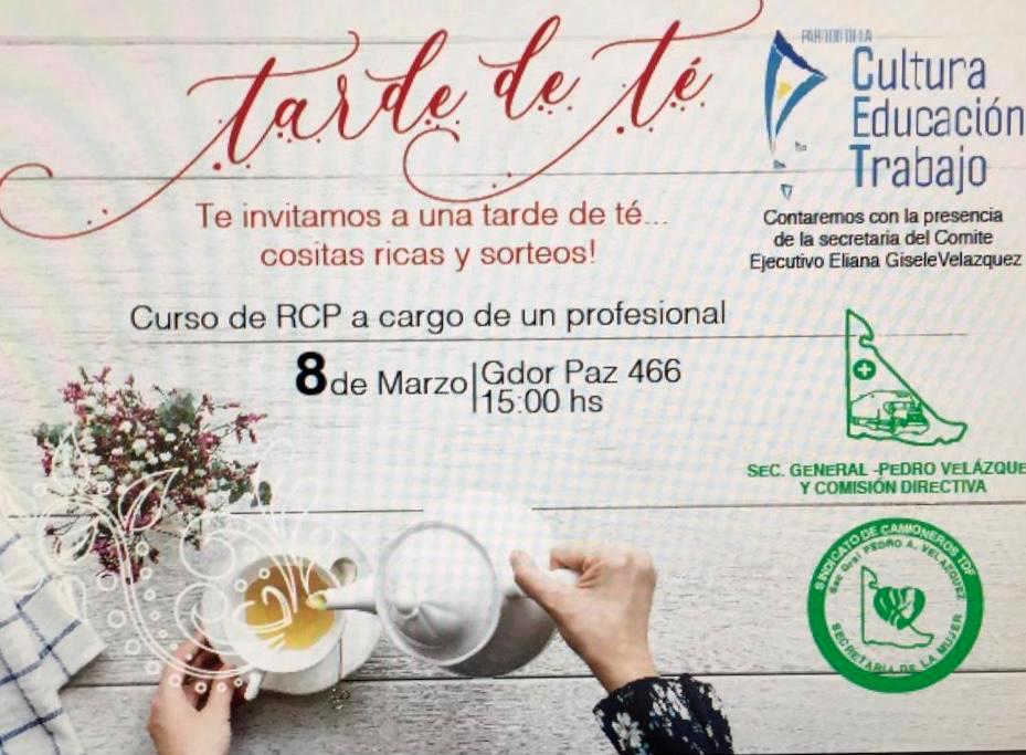 Este viernes 8 de marzo, en la sede del Sindicato de Camioneros, se realizará un agasajo a las mujeres afiliadas a la entidad sindical. Estará presente Eliana Gisele Velázquez, Secretaria del Comité Ejecutivo del Partido por la Cultura, la Educación, y el Trabajo.