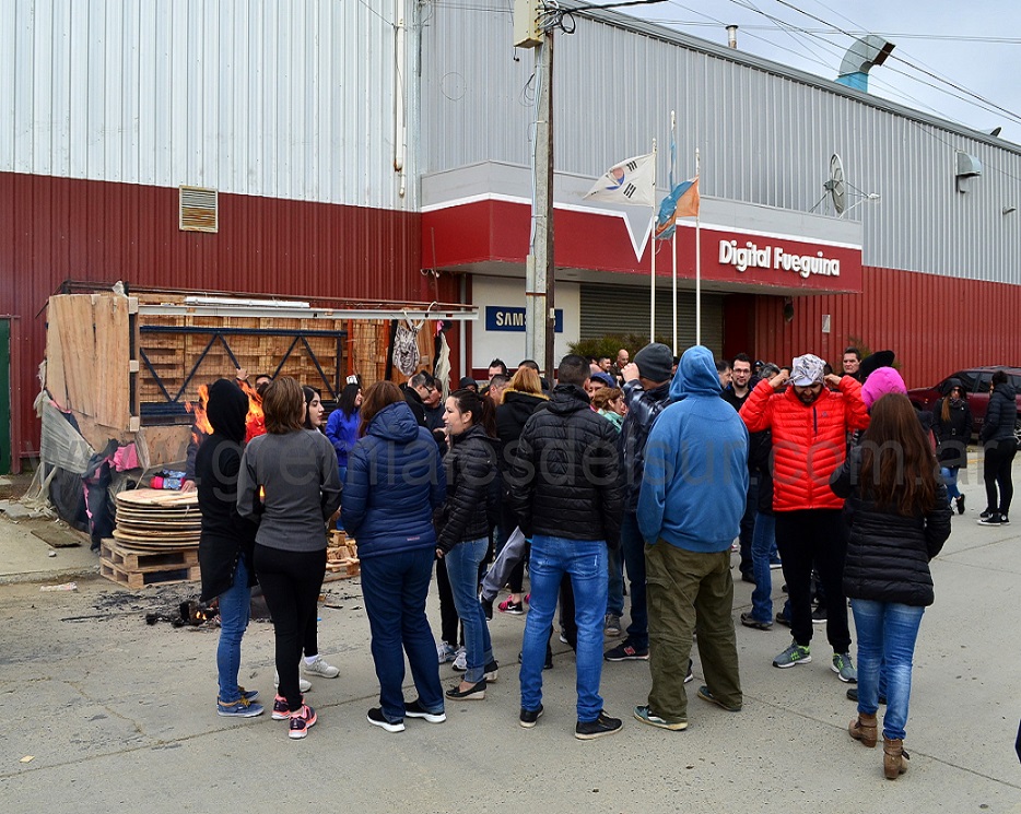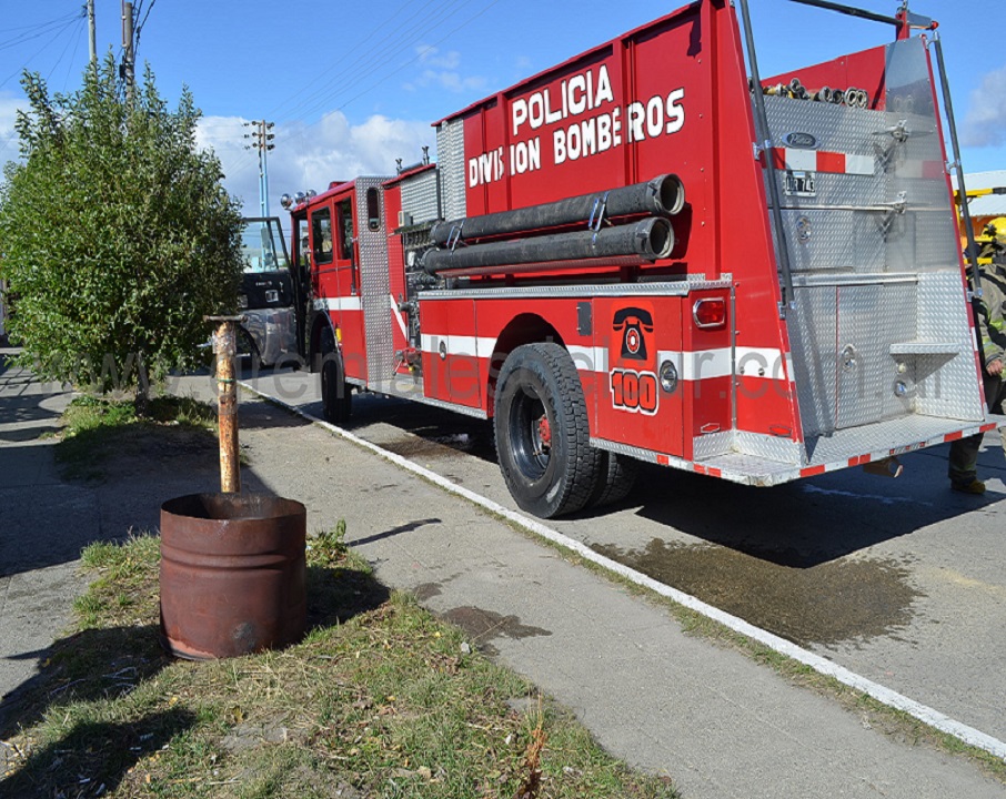 Bomberos de la Policía de la Provincia de Tierra del Fuego acudieron a la sede Río Grande de Ministerio de Trabajo de la provincia y sofocaron el fuego de un pequeño tacho con tarimas que militantes del SUTEF habían encendido en el marco de la concentración para la presentación del pedido de reapertura de paritarias.