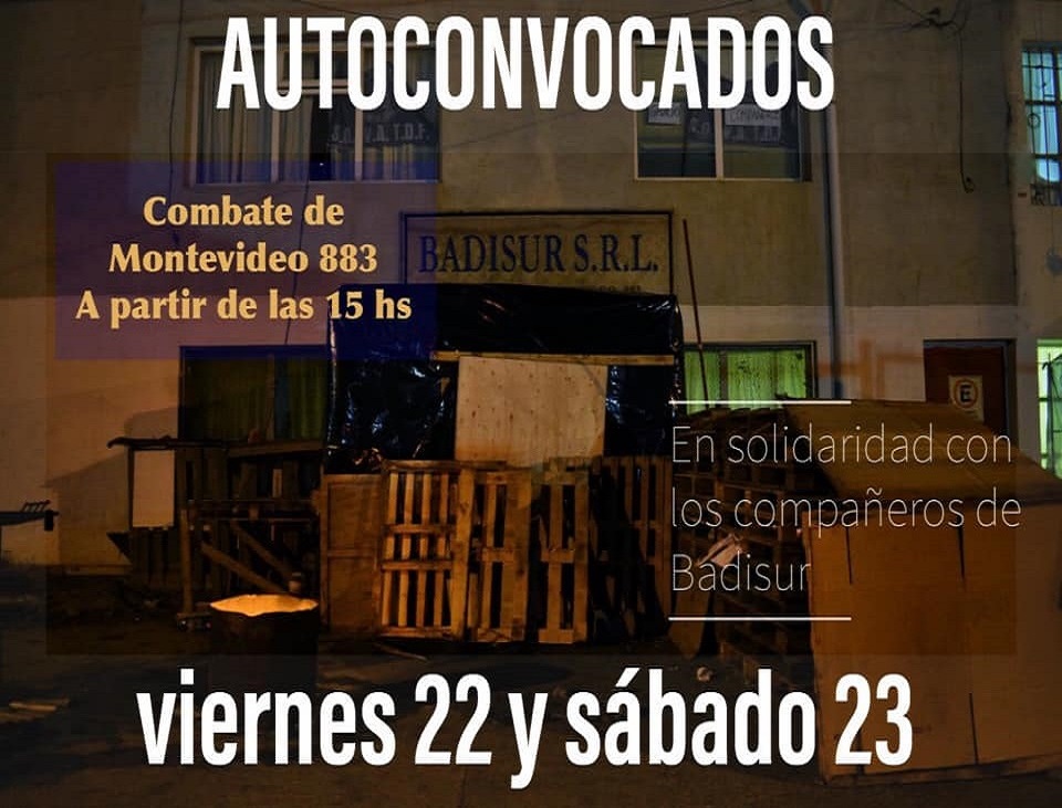 Desde las 15 horas de este viernes, y también el sábado, se realizará frente a la fábrica Badisur un festival solidario en beneficio de los trabajadores que ocupan la planta textil. El evento es organizado por la Agrupación “Autoconvocados”, y se pide la colaboración de alimentos no perecedero o productos de limpieza