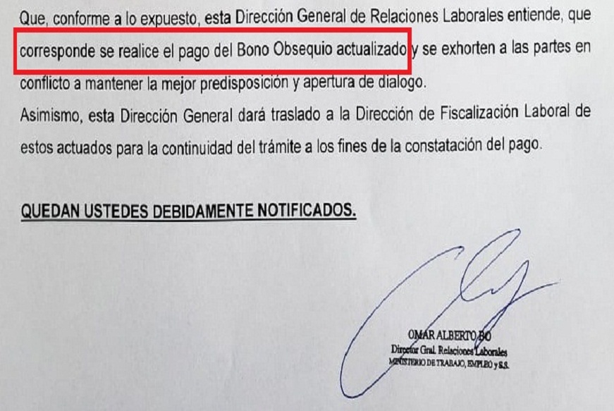 La Dirección General de Relaciones Laborales del Ministerio de Trabajo de la provincia de Tierra del Fuego se manifestó a favor del reclamo de los trabajadores de Supermercados La Anónima de Río Grande, entendiendo que corresponde que se pague el Bono Obsequio “actualizado”.