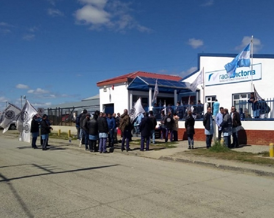 Ante la negativa de la empresa de pagar el premio anual, los trabajadores de la empresa Radio Victoria Fueguina de Río Grande, se manifestaron en el exterior de la planta.