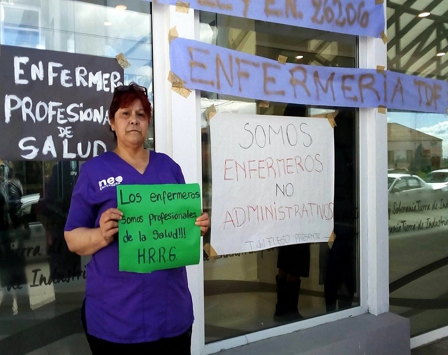 Enfermeros del sector público y privado de Río Grande se manifestaron en concordancia con el reclamo de los Profesionales de la CABA en rechazo a la promulgación de la ley que no los reconoce como Profesionales. Están impulsando una nueva convocatoria y una marcha para el próximo 21 de noviembre con el mismo reclamo.