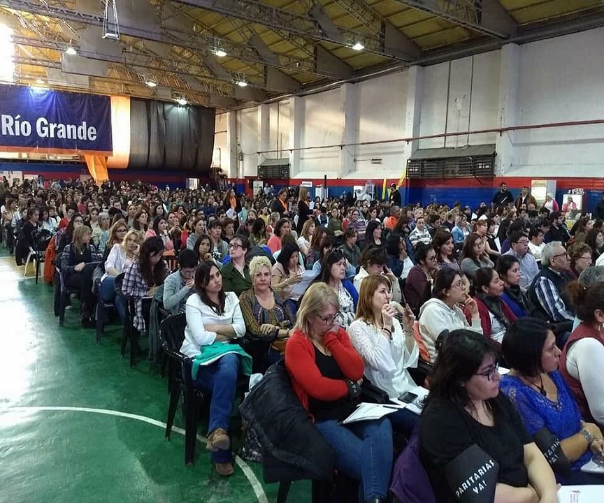 Luego de finalizar el Congreso Internacional de Educación desarrollado en Río Grande, docentes del Colegio Polivalente de Arte se manifestaron en reclamo de paritarias y aumento salarial.