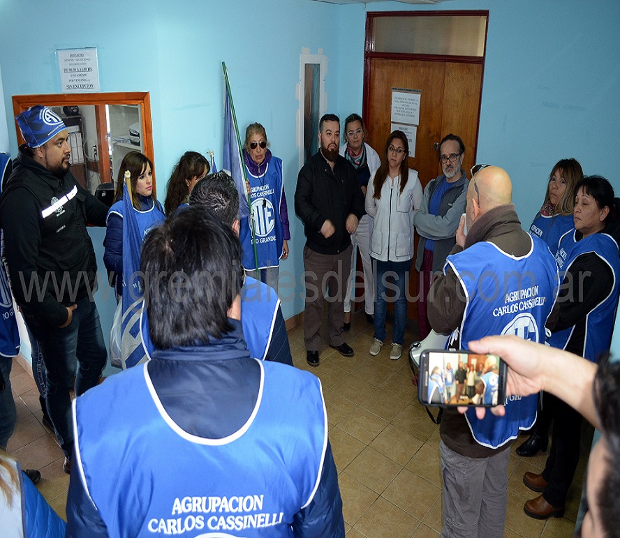 Luego del reclamo en Fiscalización Sanitaria, la dirigencia de ATE se movilizó en el interior del Hospital Río Grande denunciando las condiciones de trabajo, la tercerización del servicio de salud laboral, y la persecución a los trabajadores. ATE fue recibido por Juan Zarza, a quien se le reclamó además, la contratación de personal en condiciones de “monotributistas”.