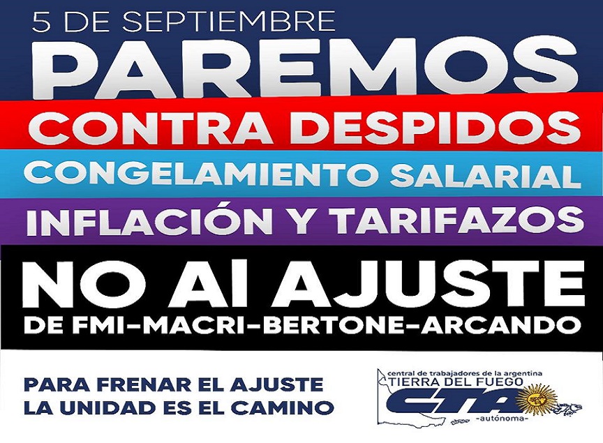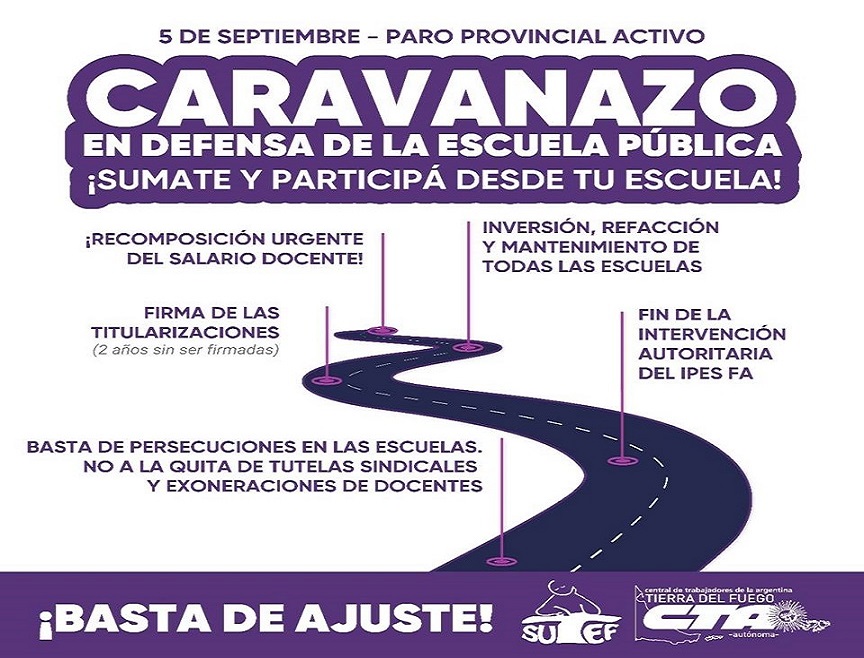 La CTA-A Río Grande se manifestó a favor de acompañar este miércoles 5 el paro resuelto por los docentes de la provincia, reclamando por la defensa de la educación pública y por el aumento salarial que el Gobierno de Rosana Bertone les viene negando desde hace casi tres años.