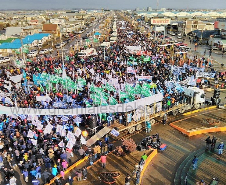 Trabajadores de diversos ámbitos protagonizaron este martes 7 de agosto una masiva movilización contra las políticas del Gobierno nacional y del Gobierno provincial, que junto con Diputados, Senadores y Legisladores provinciales, atentan contra los intereses de los habitantes de Tierra del Fuego.