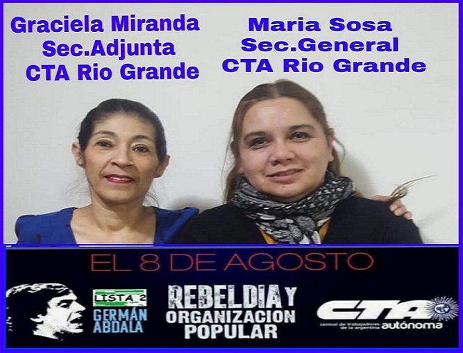De cara a las elecciones de la CTA Autónoma del 8 de agosto, la candidata a Secretaria General en la seccional Río Grande por la Lista Nº 2, María del Pilar Sosa, hizo un llamado a participar activamente de esta jornada tan importante para la clase trabajadora.