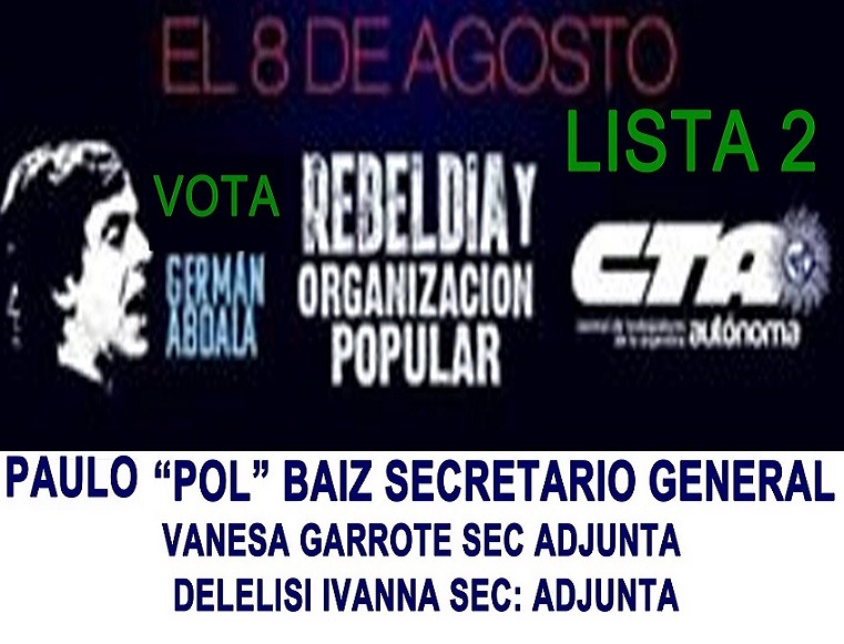 Con votos mayoritarios de Río Grande, la Lista N° 2 que encabezó Paulo Baiz como candidato a Secretario General, gano las elecciones de la CTA Autónoma en Tierra del Fuego. Carlos Córdoba, actual Secretario General provincial de ATE, que encabezó la Lista N° 4, tuvo un escasísimo caudal de votos en Río Grande.