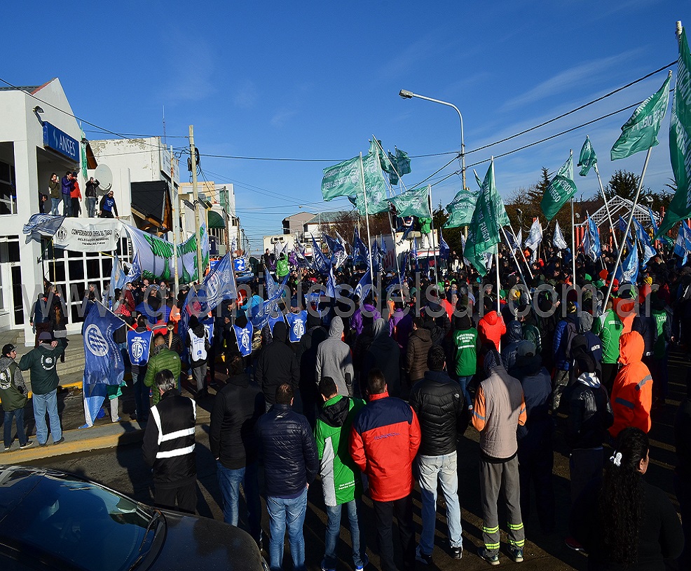 Entidades sindicales, organizaciones sociales y partidos políticos, se manifestaron frente a la UDAI Río Grande de ANSES en contra de la eliminación de la “zona” a las asignaciones familiares decretadas por el Gobierno Nacional.