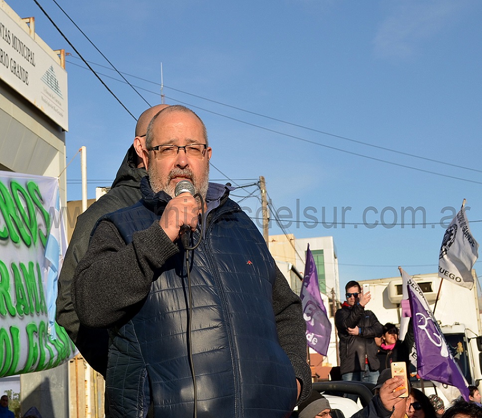 El integrante del Secretario Nacional de SECASFPI, gremio de ANSES, José Barretta, fue el único orador en el acto desarrollado en Río Grande en contra de los recortes de las asignaciones familiares que dispuso el Gobierno nacional.