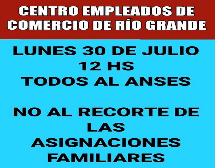 La CTA Autónoma de Río Grande convoca a las puertas de ANSES este lunes 30, a las 12.00 horas, para defender los derechos de nuestros hijos y nuestras familias frente al nuevo saqueo que nos quieren imponer.