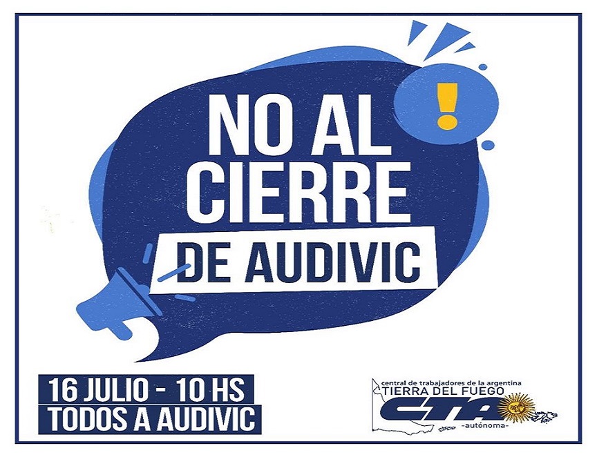 El lunes 16 de julio a las 10 de mañana se realizará una concentración en las puertas de AUDIVIC en reclamo al no cierre de la planta que emplea a más de 70 obreros metalúrgicos en la ciudad de Río Grande.