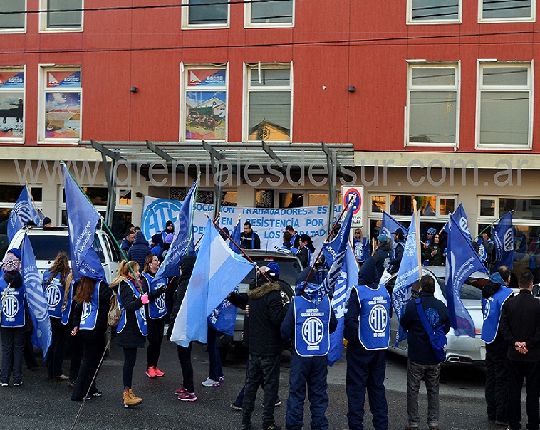 En el marco de la tercera jornada consecutiva de reclamos en la vía publica, ATE Río Grande se manifestó en la Delegación del Ministerio de Educación. Reclamaron los salarios impagos de docentes y personal POMyS. De no solucionarse la situación iniciaran las acciones legales correspondientes y comenzarán con retenciones de servicios.