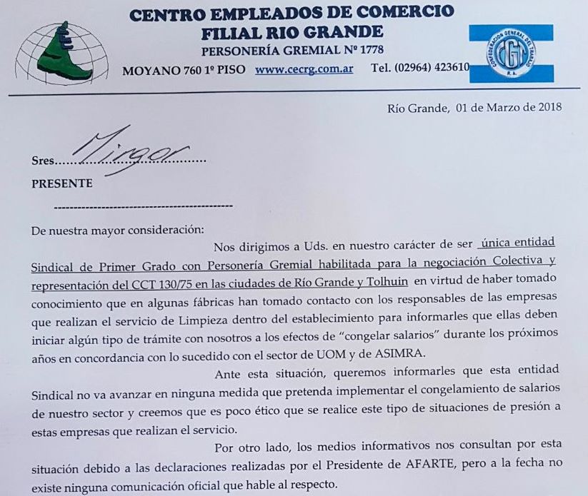 El Secretario Adjunto del Centro de Empleados de Comercio de Río Grande, Daniel Rivarola, dio cuenta de la presión que ejercen las electrónicas para que empresas de limpieza, y de otros servicios, no apliquen aumentos salariales a sus trabajadores.