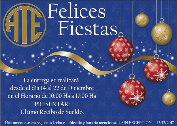 Desde el jueves 14 y hasta el viernes 22 de diciembre, la Asociación Trabajadores del Estado seccional Rio Grande, entregará el presente a navideño todos los afiliados.