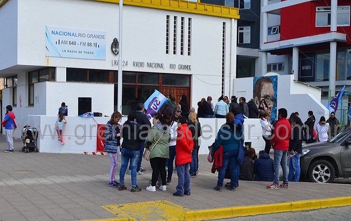 La esquina donde se encuentra ubicada Radio Nacional Río Grande, fue el escenario para desarrollar las actividades programas por el SUTEF, en el marco de la jornada del paro provincial.