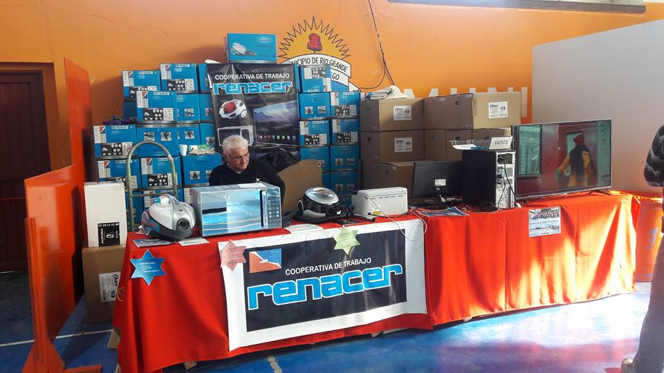 En el marco de la cuarta edición de la muestra “La Industria a PUERTAS ABIERTAS”, que organiza el Municipio de Río Grande, la Cooperativa Renacer de la ciudad de Ushuaia, expone y vende microondas y aspiradoras.