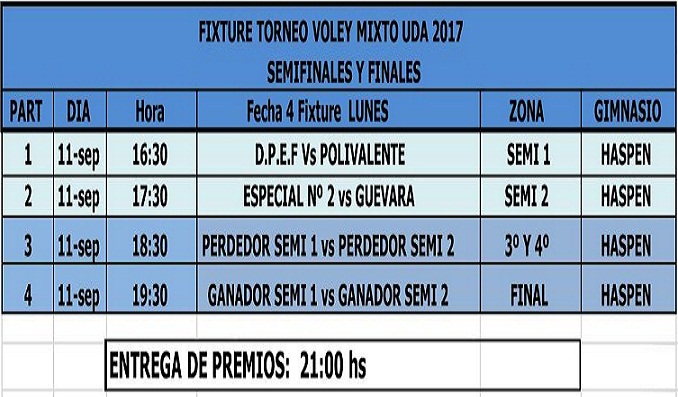Organizado por la UDA seccional Tierra del Fuego, llega a su fin el Octavo Torneo Interescolar de Vóley. El lunes 11 de setiembre se jugarán las semifinales y la final en el Gimnasio del Colegio Haspen.