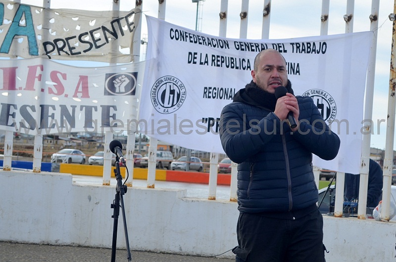 El Secretario General del gremio textil SETIA, en integrante del triunvirato que conduce la CGT Regional Río Grande, hizo uso de la palabra en el acto que cerró la Jornada en Defensa de los Puestos de Trabajo, la Industria Nacional y la Soberanía en Río Grande.