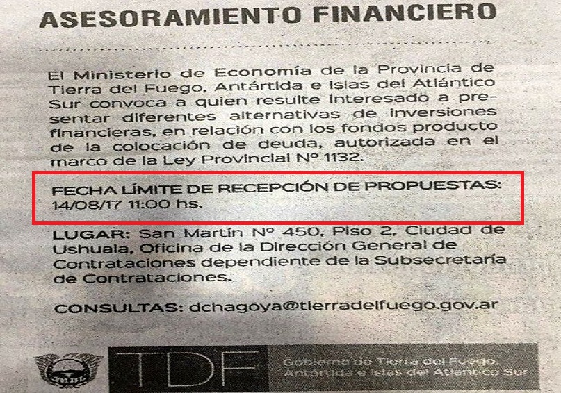 El Secretario General de la CTA Autónoma de Tierra del Fuego, brindó apreciaciones sobre el endeudamiento externo tomado por el Gobierno de Bertone por 200 millones de dólares. “Dijeron que tenían un plan de inversión y hoy publican pidiendo ideas”, dijo Catena respecto del aviso donde el Gobierno fueguino convoca a interesados en presentar alternativas de inversiones financieras.