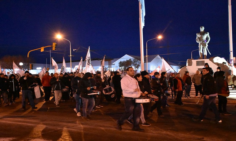 La intersección de San Martín y Belgrano en el centro de Río Grande, fue el escenario para la manifestación de trabajadores que repudiaron el desalojo y la represión en la empresa PepsiCo de Buenos Aires.