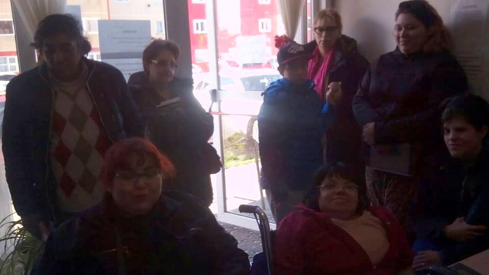 Personas con Discapacidad y familiares de las mismas, debieron esperar por horas ser atendidos por el Secretario de Discapacidad de la provincia, Alejandro Rojo Vivot, en una dependencia donde tuvieron que correr el mobiliario para que puedan ingresar personas en sillas de ruedas.