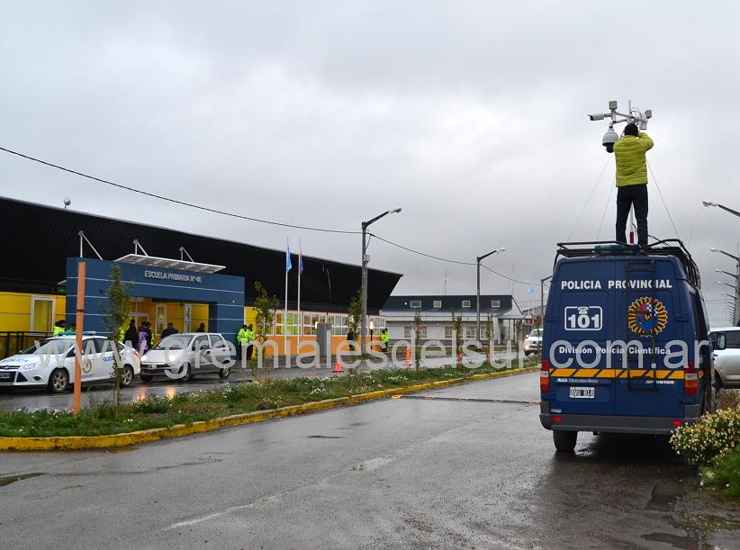 La policía de la provincial desplegó un operativo especial en torno a la Escuela provincial Nº 46 del Bº Chacra 11 de Río Grande para el acto de apertura del ciclo lectivo 2017. Montó un sistema de video vigilancia arriba de una combi de la fuerza. Paralelamente, la actividad en los otros establecimientos educativos lindantes a la Escuela Nº 46 era prácticamente nula. GALERÍA DE FOTOS.