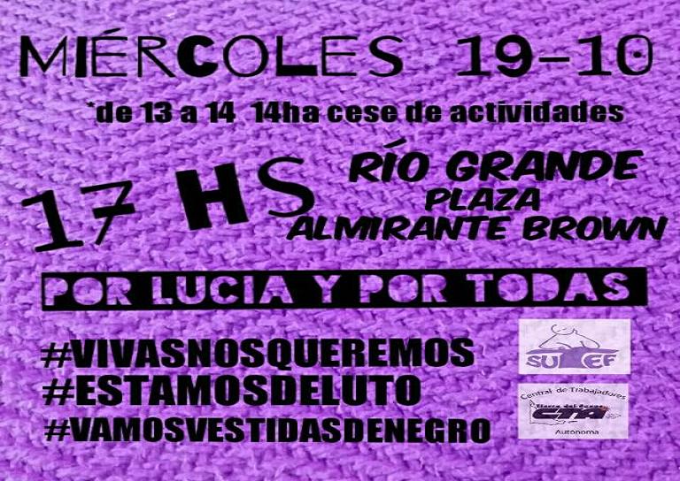 SUTEF realizará una desobligación en toda la provincia el miércoles 19 de octubre desde las 16:30 horas, en el marco del paro nacional de mujeres. Habrá concentraciones en Río Grande, Tolhuin y Ushuaia.
