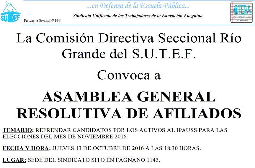 El SUTEF convocó a Asamblea General Resolutiva para refrendar los candidatos por el sector activo para las elecciones en la Obra Social Provincial y de la Caja de Previsión Provincial.