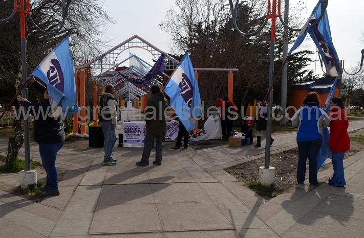En Río Grande, militantes del SUTEF realizaron una radio abierta y juntada de firmas en la Plaza Almirante Brown contra las exoneraciones en el marco del paro nacional docente.