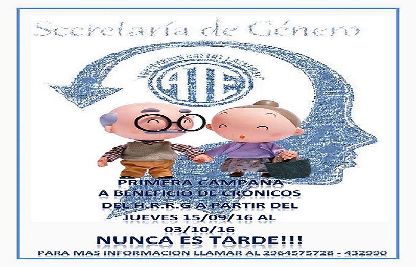 ATE Río Grande lanzó una campaña solidaria para asistir a los enfermos del Centro de Pacientes Crónicos, que depende del Hospital de la ciudad. Recolectan distintos elementos que luego serán entregados a la institución.