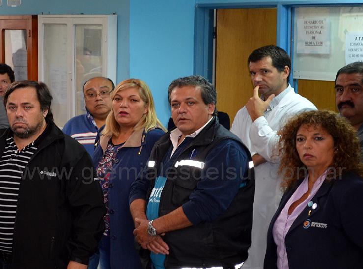 Militantes de ATSA se manifestaron frente la Hospital de Río Grande en reclamo por la actualización de los valores de las guardias, los que se encuentran congelados desde setiembre de 2012.