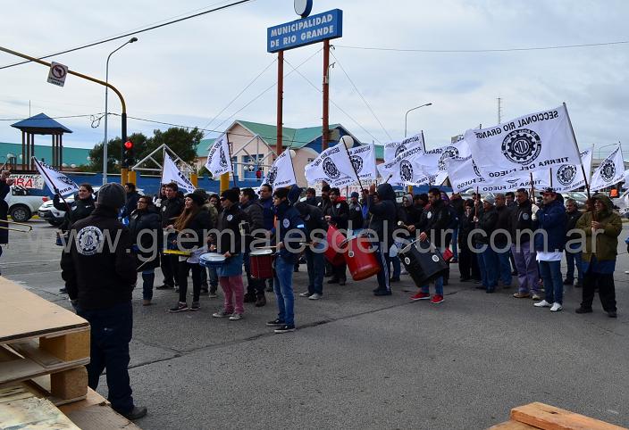 La Asociación de Trabajadores Municipales (ATM) de Río Grande, se manifestó en el Galpón Municipal ubicado en el parque industrial. Reclaman por aumento salarial y condiciones laborales.