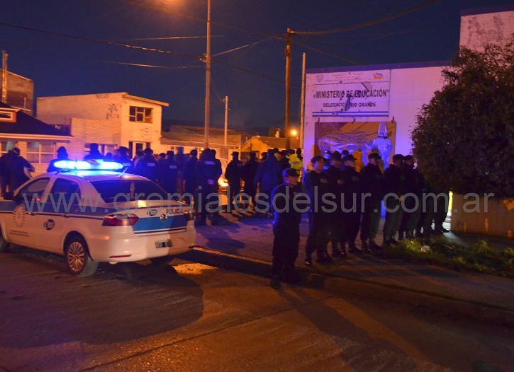 Desde la madrugada de este lunes 25 de abril, la policía de la provincia desplegó un inusitado operativo policial en la Delegación del Ministerio de Educación en Río Grande. GALERÍA DE FOTOS.