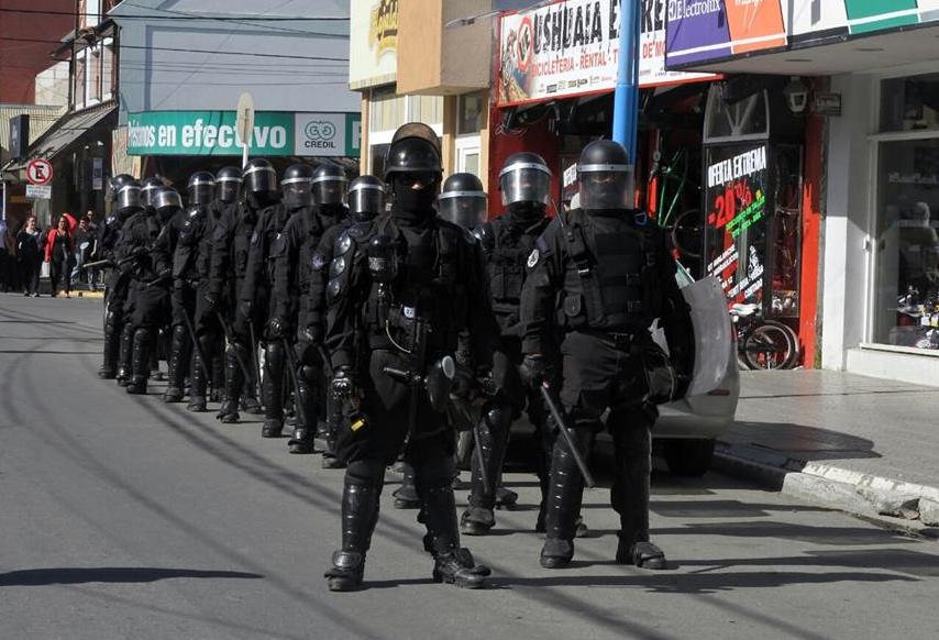 El Ejecutivo provincial dispuso la inmediata afectación de efectivos del grupo antimotines en las adyacencias del edificio donde funcionan los bloques políticos de la Legislatura provincial, ante el reclamo de trabajadores. A 24 horas de que Rosana Bertone dijo, “jamás violentaremos un derecho”, sacó la policía a la calle para reprimir trabajadores. GALERÍA DE FOTOS.
