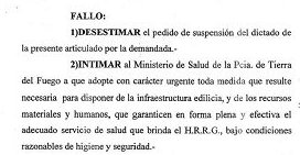 La resolución del Juez Civil y Comercial Aníbal López Tilli establece que el Ministerio de Salud de la provincia tiene que adoptar con carácter de “urgente” toda medida que resulte “necesaria para disponer de la infraestructura necesaria de recursos materiales y humanos” para el Hospital Regional Río Grande.